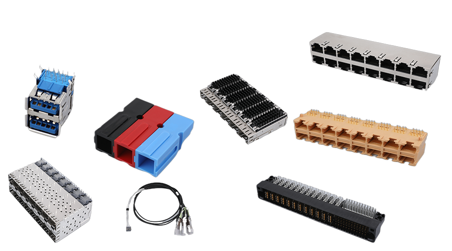 網(wǎng)絡(luò)連接器 (集成RJ45系列和普通RJ45系列)、高速連接器(SFP/QSFP/DSFP/CFP系列)、電源連接器、高速DAC和背板高速線纜組件、BTB連接器、網(wǎng)絡(luò)變壓器、RJ11連接器系列、USB&TYPE-C系列、精密五金件等。公司產(chǎn)品廣泛應(yīng)用于包括“5G/6G”在內(nèi)的網(wǎng)絡(luò)、通訊等行業(yè),并致力于滿(mǎn)足新能源汽車(chē)、高端裝備、智能顯示、軌道交通、機(jī)器人等高精尖終端領(lǐng)域?qū)B接器市場(chǎng)的需求。